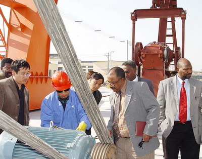國外客商參觀大港中成機械制造工程生產(chǎn)現(xiàn)場。