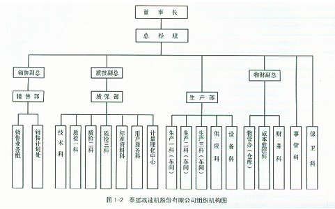 Ⅰ豐碩成果 坐落在中國蘇中平原的泰星減速機股份有限公司從1984年建廠,經(jīng)過20多年的拼搏發(fā)展,取得了驕人的業(yè)績,創(chuàng)造了許多令人難以置信的奇跡。 從當初無資金、無設(shè)備、無產(chǎn)品、無市場的一窮二白、資不抵債的作坊式小廠發(fā)展成為現(xiàn)擁有固定資產(chǎn)3.8億元,員工2500多人,其中一程技術(shù)人員586人,占地68萬平方米的中國最大的減速機制造企業(yè),成為了中國減速機的生產(chǎn)基地,泰星減速機股份有限公司。根據(jù)2003年中國機械500強的排序,名列全國減速機行業(yè)榜首。 公司生產(chǎn)減速機不僅產(chǎn)量最高,銷量也最大。2004年,公司的銷售收入為5.5億元,主要產(chǎn)品的市場占有率高達25%,已經(jīng)連續(xù)11年名列全國同行首位。 20年前公司為社會創(chuàng)造了33億4千多萬元的財富,向國家交納了近4億元的稅金。 公司的產(chǎn)品遍布全國各地,并已走向德國、日本、美國等機械強國,國家的重點工程項目,從三峽水利工程,江陰長江大橋建設(shè)工程,黃河小浪底工程,葛洲壩工程,西氣東輸工程到南水北調(diào)工程等都在使用泰星的產(chǎn)品。 泰星減速機股份有限公司組織機構(gòu)圖見圖1-2。在公司目前的2500多名員工中,有50%為當?shù)剞r(nóng)民,大專以上學(xué)歷的僅占20%,其余的皆為初、高中以下學(xué)歷,但他們卻生產(chǎn)出了國內(nèi)領(lǐng)先、國際一流的產(chǎn)品。 泰星牌減速機成為中國減速機行業(yè)惟一的國家“121”重點保護名優(yōu)產(chǎn)品。