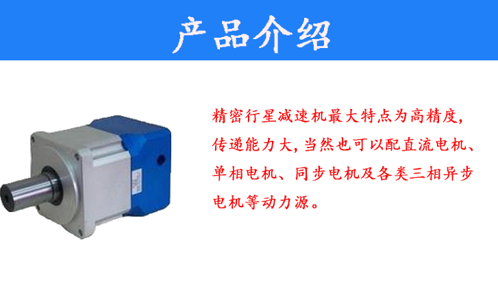 精密行星減速機最大特點為高精度,傳遞能力大,當然也可以配直流電機、單相電機、同步電機及各類三相異步電機等動力源。