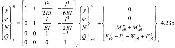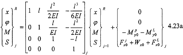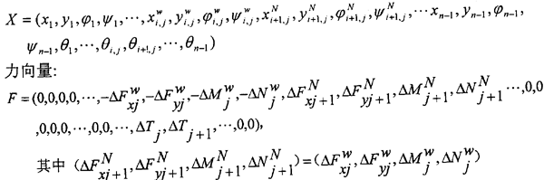 為總剛度陣,乃是因為式(4.20)還不是彎扭耦合振動方程的最終形式。這是因為1):式(4.20)右端含有未知力ΔFxjk,ΔFyjk,ΔMjk,ΔNjk,ΔTj,(k=w,N),方程組中未知量個數(shù)多于方程個數(shù);2):ΔFxjk,ΔFyjk,ΔMjk,ΔNjk,ΔTj,(k=w,N)是本征的。必須解決上述這兩個問題,才能得到彎扭耦合振動方程。因而我們還需要尋求一種關(guān)系,通過這種關(guān)系,解決上述兩個問題,使得各轉(zhuǎn)子的彎扭振動及轉(zhuǎn)子間的彎扭振動耦合起來,并使彎扭耦合振動的方程組有定解,即最終使(4.20)式化為如下標(biāo)準(zhǔn)形式