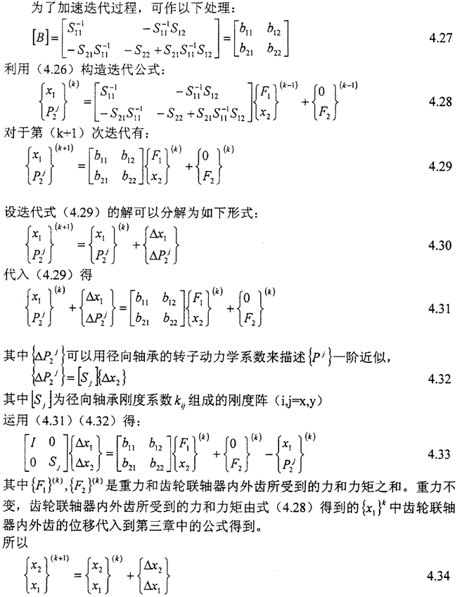 方程(4.1a),(4.1b)仍然可以被用來求解軸系的負(fù)荷分配,只不過齒時應(yīng)表在成如下形式: