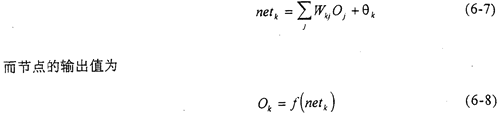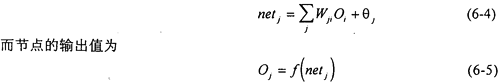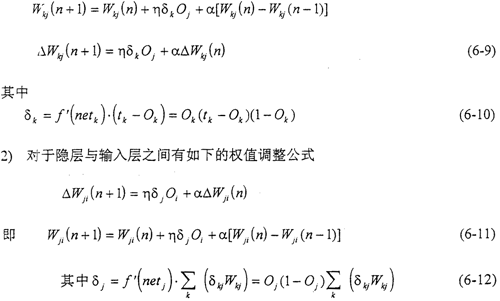 對(duì)于圖6-1所示的網(wǎng)絡(luò),其訓(xùn)練學(xué)習(xí)的過程包括:1)網(wǎng)絡(luò)內(nèi)部的前向計(jì)算;2)誤差的反向傳播。其主要目的就是通過逐步調(diào)整網(wǎng)絡(luò)的內(nèi)部連接權(quán)值,使網(wǎng)絡(luò)的均方誤差達(dá)到我們的要求。網(wǎng)絡(luò)內(nèi)部的連接權(quán)值的調(diào)整,都是采用推廣的δ規(guī)則來完成的。