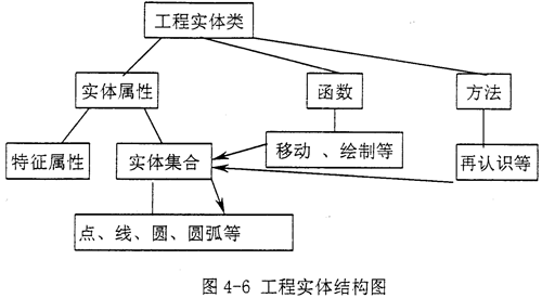 單個(gè)實(shí)體是通過(guò)點(diǎn)、直線、圓、圓弧等信息的集成而體現(xiàn)的,因此,在對(duì)實(shí)體類(lèi)進(jìn)行定義時(shí),可充分利用AutoCAD中的“實(shí)體集合”這個(gè)設(shè)計(jì)概念,把*.dwg圖形數(shù)據(jù)庫(kù)中的若干幾何信息集成起來(lái),使之成為一個(gè)整體,再將此“實(shí)體集合”并入實(shí)體類(lèi)的一個(gè)屬性(見(jiàn)圖4-6),當(dāng)實(shí)體在繪制、移動(dòng)等操作中被調(diào)用。