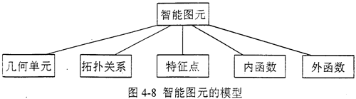 在系統(tǒng)實現(xiàn)中,智能圖元是一個典型的“類”的結構,包括幾何單元集合、拓撲關系描述、特征點集合、內函數(shù)和外函數(shù)(見圖4-9),定義如下: