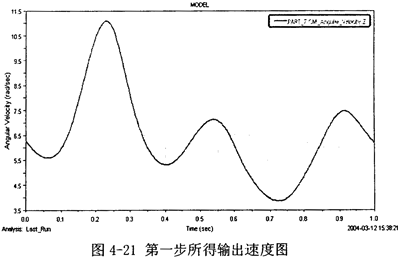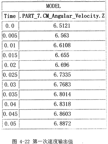 (2)在adams下建立的樣機模型里,將上述速度值設(shè)置到第二輸入中,設(shè)置好后,進(jìn)行仿真。得到輸出速度圖4-21。