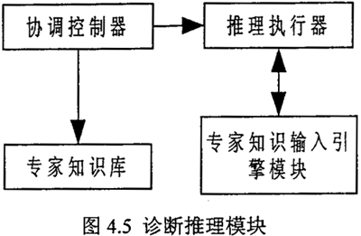 推理模塊是一個(gè)隱藏于后臺(tái)的推理計(jì)算模塊,它的結(jié)構(gòu)如圖4.5,協(xié)調(diào)控制器用來管理各推理機(jī)的工作并協(xié)調(diào)推理執(zhí)行器與專家知識(shí)輸入引擎模塊可知,對(duì)一示同的故障,其“數(shù)據(jù)層”、“故障現(xiàn)象層”、“故障原因?qū)印奔捌渌鼈冎g的連線關(guān)系絕不相同,協(xié)調(diào)控制器就是將“數(shù)據(jù)層”、“故障現(xiàn)象層”、“故障原因?qū)印奔捌渌鼈冎g的連線關(guān)系自動(dòng)轉(zhuǎn)化為推理進(jìn)程關(guān)系,由推理執(zhí)行器完成推理診斷工作。