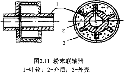 從圖2.11中我們可看出,主動件和被動件都是各自獨立回轉的零件,當主動軸回轉時,將粉末介質帶起而回轉,轉速升高后,由于離心力的作用,使粉末介質之間和介質和外殼之間的摩擦力隨之增加,因而帶動被動軸回轉。