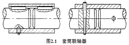 套筒聯(lián)軸器結構如圖2.1所示,由一整套公用套筒并利用鍵,花鍵或錐銷等聯(lián)接件實現(xiàn)與兩軸的聯(lián)接。