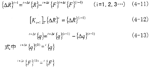 上述方程是根據(jù)有限元系統(tǒng)的響應(yīng)線性化得到的,每一次迭代都是用式(4-11)算小平衡的載荷向量,由這些載荷向量從式(4-10)中導(dǎo)出位移向量,然后繼續(xù)迭代直至不平衡線荷同量{ΔR}(i-1)或位移向量qi足夠小為止。